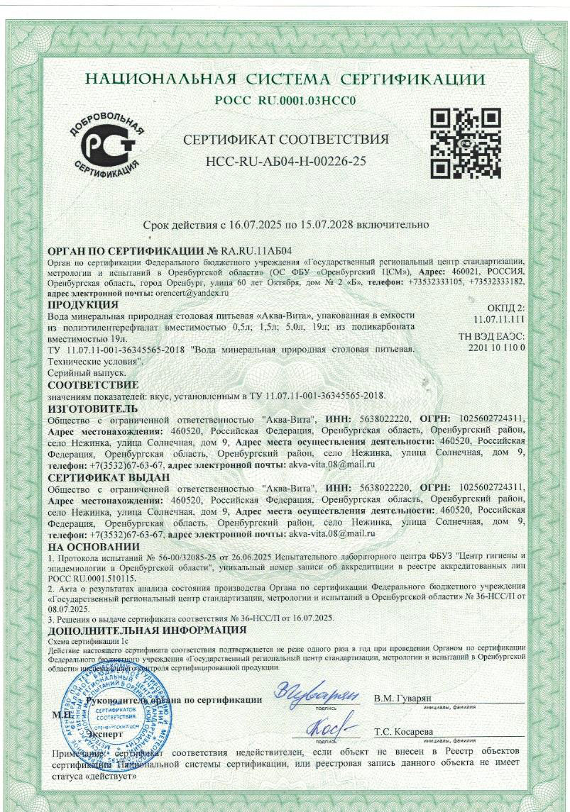 Общество с Ограниченной Ответственностью «Аква-Вита» было основано в 2002 году. На протяжении многих лет наша компания снабжает потребителей в Оренбурге и области качественной питьевой водой в полной мере соответствующей требованиям – химические, бактериологические показатели воды находятся в пределах допустимых значений, соответствует требованиям СанПиН 2.1.4.116-02.